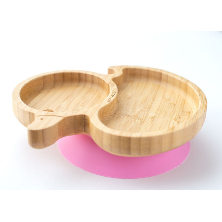 Miseczka Bambusowa różowa Kaczuszka z przyssawką do karmienia niemowląt i małych dzieci od 6 m. Jest wykonany z materiału bambusa, który jest materiałem, organicznym, nadającym się do wyniku, biodegradowalnym, uprawianym i zbieranym bez użycia pestycyd