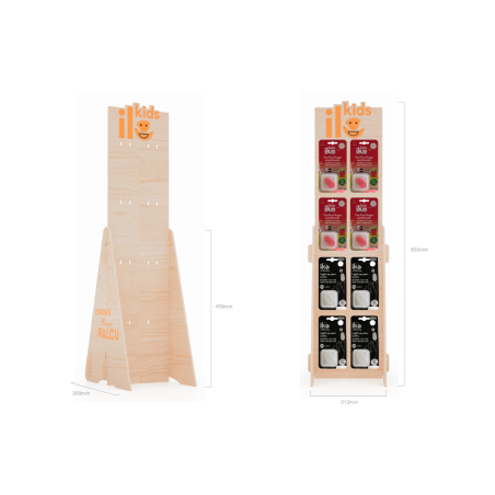Stojak naladowy IKO wykonany ze sklejki, idealna do pełnego zatowarowania we wszystkie wariany szczoteczki IKO.
