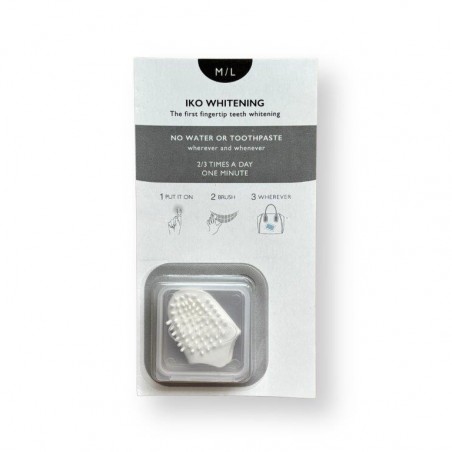 IKO Szczoteczka do zębów Whitening EXTRA Mentol M/L Szczoteczka do zębów iKo Whitening w 100% nadaje się do recyklingu i udowodniono, że wybiela i poleruje zęby w sposób delikatny i skuteczny, dzięki specjalnej formule zawierającej dodatek białej glinki z olejkami eterycznymi z szałwii, cytryny i mentolu w opatentowanym polimerze. Są to elementy, które w naturalny sposób udowodniono klinicznie, że redukują przebarwienia na zębach i odświeżają oddech. Rozświetl swój uśmiech Gdziekolwiek i kiedykolwiek Szczoteczka na palec dla dorosłych IKO Whitening, to miękka w dotyku, polimerowa nakładka na palec wyposażona w wypustki, które wyczyszczą Twoje zęby i delikatnie wymasują dziąsła. Opatentowana formuła z białą glinkom pozwala na bezpieczne czyszczenie i polerowanie zębów dzięki czemu stają się one białe i błyszczące. Nasączone naturalnymi olejkami antyseptycznymi z szałwii i limonki i mięty pozwolą Ci szybko i wygodnie odświeżyć jamę ustną i pozbyć się nieświeżego oddechu bez użycia wody i pasty do zębów. Jej niepodważalna rewolucyjność została potwierdzona pod koniec 2016, gdy zaczęła regularnie podróżować z kosmonautami NASA. Doskonale radzi sobie na międzynarodowej stacji kosmicznej ISS, w podróży, w pracy, na biwaku i wszędzie tam, gdzie ciężko umyć zęby po posiłku. "ZAWSZE PO POSIŁKU POZA DOMEM" Szczoteczka zbiera doskonałe recenzje wśród opiekunów osób obłożnie chorych i niedołężnych, ponieważ brak konieczności wody znakomicie ułatwia codzienną higienę. Uwaga, to nie jest to samo, co szczoteczka na palec dla niemowląt i dzieci, ten produkt rekomendowany jest dla dorosłych i dzieci od 6 roku życia(wersja dla dzieci). Jej skuteczność potwierdzają stomatolodzy i farmaceuci we Włoszech, Szwajcarii oraz USA. Posiadamy różne rozmiary S,M,L Kluczowe cechy: - idealna czystość zębów i języka; - nie wymaga użycia wody i pasty; - bez zbędnej chemii i nie zawiera parabenów, SLS, fluoru i chloru; - po prostu nałóż, wyszczotkuj i uśmiechaj się; - komfortowo i dyskretnie; - gdziekolwiek jesteś, wszędzie poza domem. - zdrowa alternatywa dla gumy do żucia Zapewnia czystość i świeżość bez zbędnej chemii i nie zawiera parabenów, SLS, fluoru i chloru. Używaj do czyszczenia zębów i języka. Umieść IKO na palcu i czyść zęby i dziąsła przez dwie minuty. To będzie łatwe i przyjemne! Po użyciu nie jest potrzebne płukanie. Do 100 użyć. Należy wymienić po 100 użyciach lub odczuwalnej utracie właściwości. SKŁAD: Hydroagentowany kopolimer styren-butadien, Biała Glinka, Mentol, Olej z Szałwii i cytrusów