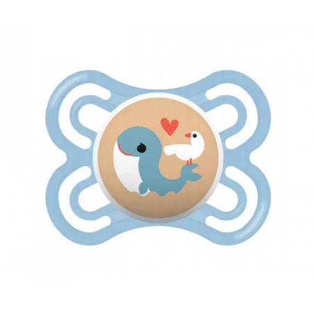 Smoczek dla noworodka. Smoczki MAM są efektem wyjątkowej pracy zespołowej MAM z pediatrami, dentystami i ortodontami. Duże otwory zapewniają dopływ odpowiedniej ilości powietrza, co w połączeniu z wyprofilowaną tarczką sprawia, że smoczek MAM Air Night 0+ nie podrażnia skóry dz